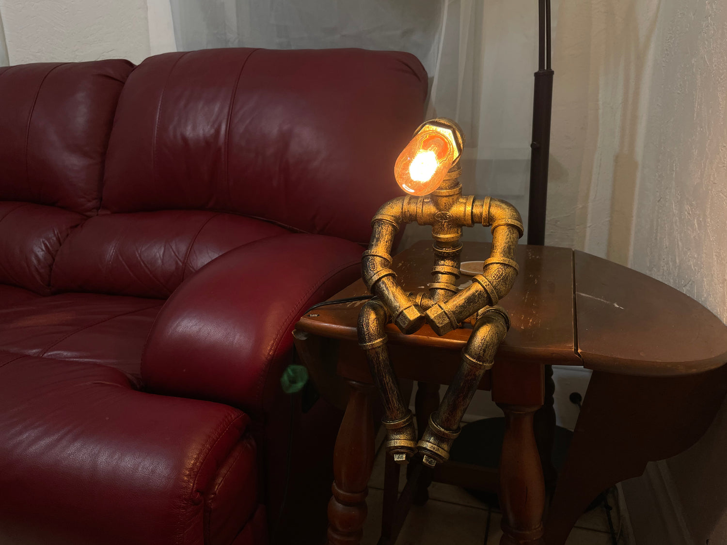 Bring character and charm into your space with RoboLamp, a robot-shaped lamp made from real industrial pipe fittings. He’s lost, a little confused, and utterly lovable.